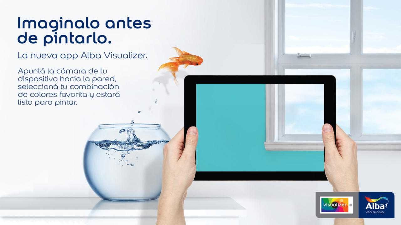 La nueva aplicación Alba Visualizer te permite pintar las paredes y ver los resultados en tiempo real, visualizando los colores, antes de aplicar una sola gota de pintura. Usando la tecnología de realidad aumentada, la aplicación te da al instante una impresión realista de cómo tu habitación podría quedar. Ahora elegir los colores de pintura es muy fácil y seguro.